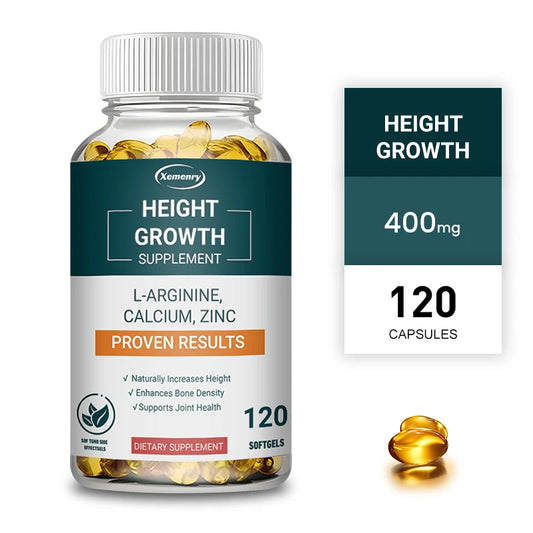 Height Growth Supplement - Calcium, L-Arginine, Vitamin D3, Zinc - Promotes Bone Growth - Helps Natural Height Growth Capsules